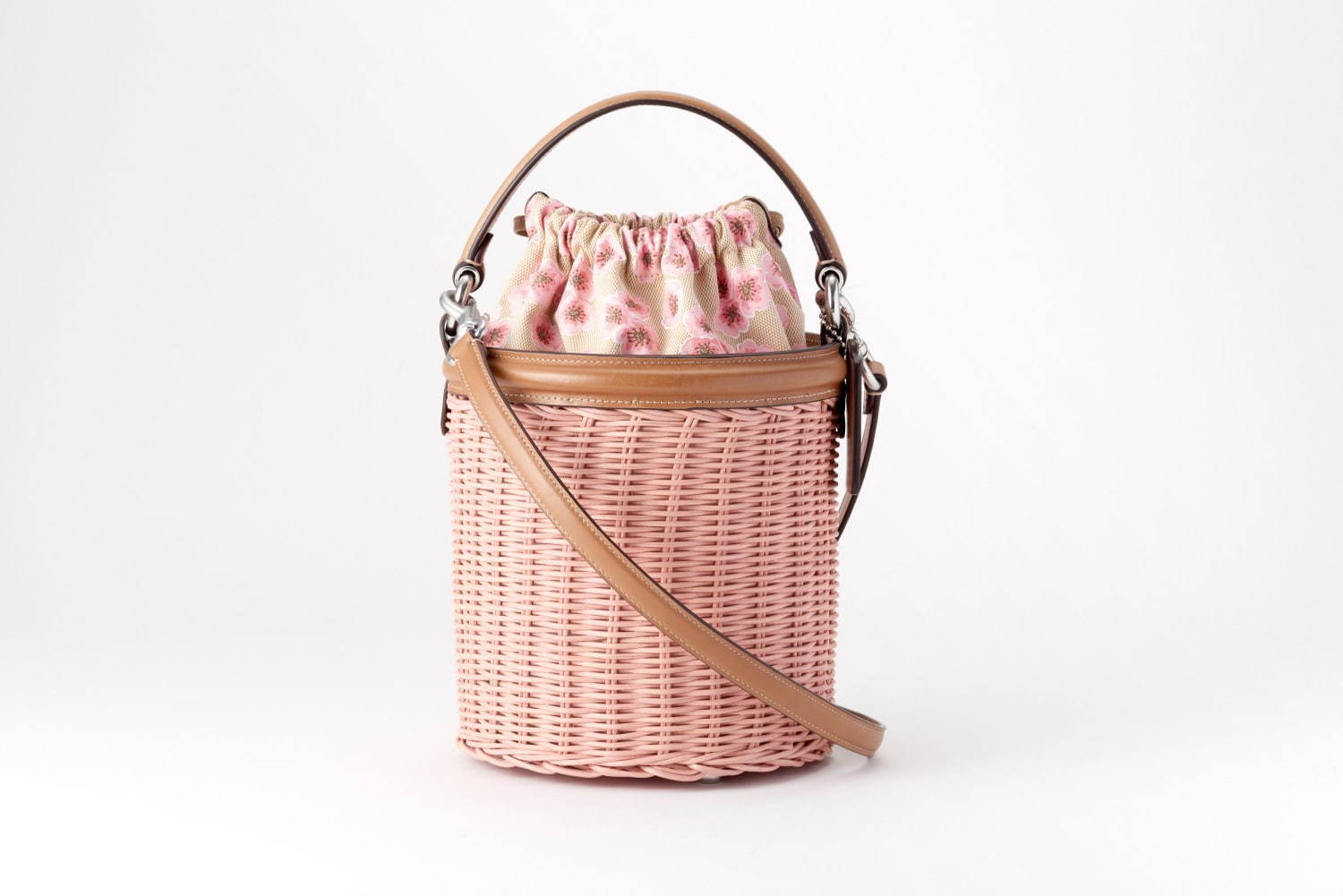 Coach是樱花季的老朋友了,几乎每年春天都会按时推出一个满身粉嫩的系列。在今年的樱花限定配饰中,Coach与它一贯坚持的传统美式风格告别。在那几个平时配色深沉得不得了的包袋中,一朵朵巨大的樱花取代以往层叠的“C”字logo,压印技术的使用为这些花朵带来立体感。当然,如果你想趁着春风到小区楼下草坪进行一场难得的室外活动,其中一款粉色编织水桶袋想必会是个提升氛围感的好选择。