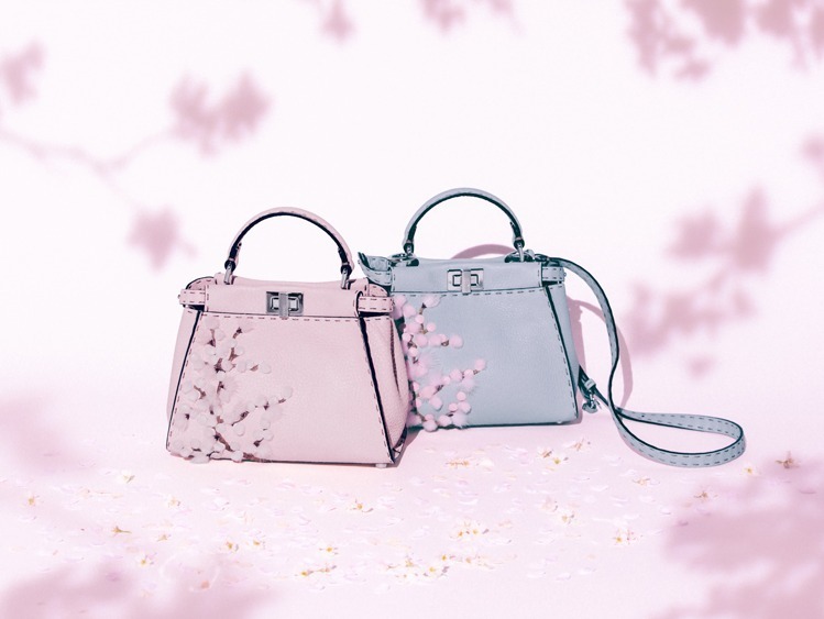 Fendi在今年推出的樱花季限定系列中,一如既往地将自家招牌的PEEKABOO包袋钦定为主角。粉红色和浅蓝色的两款PEEKABOO手包由貂皮制成,并用动物毛发装饰出温柔的粉樱图案,工艺细节满满。