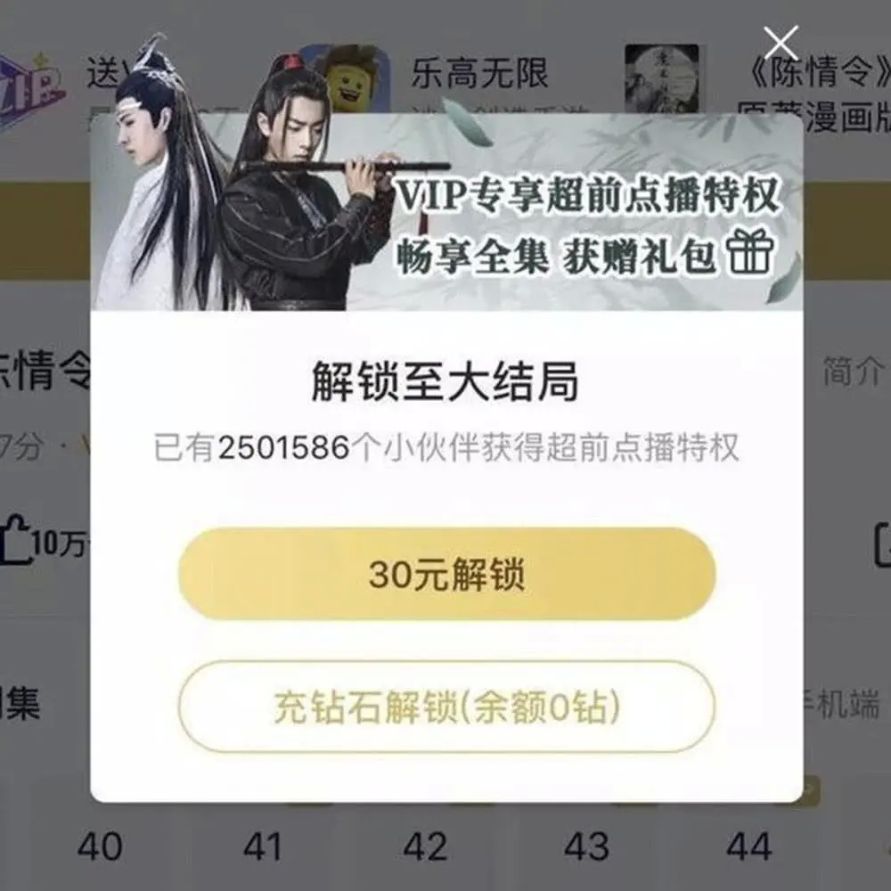 节流的同时也需要开源,这方面腾讯视频在2019年做得不错。其率先在《陈情令》中开启超前点播的商业模式,为腾讯视频实实在在挣到了很多钱。根据当时的资料,腾讯视频在《陈情令》大结局时推出VIP会员基础上30元看5集的套餐,推出仅仅3天后就有260多万人付费,收入超过5000万元。