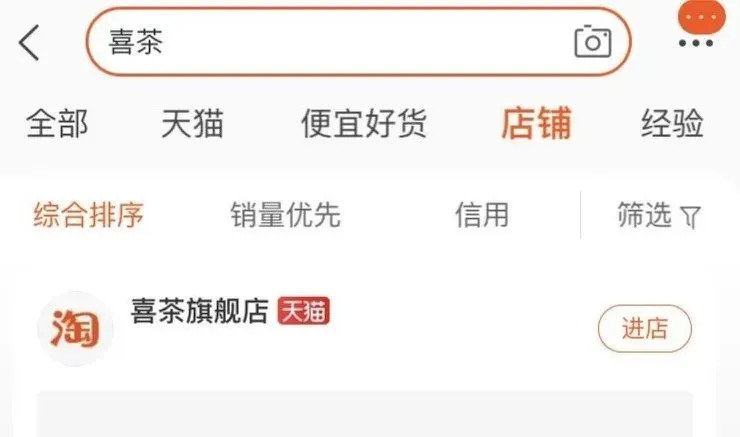 搜索喜茶,“喜茶旗舰店”呈现出来