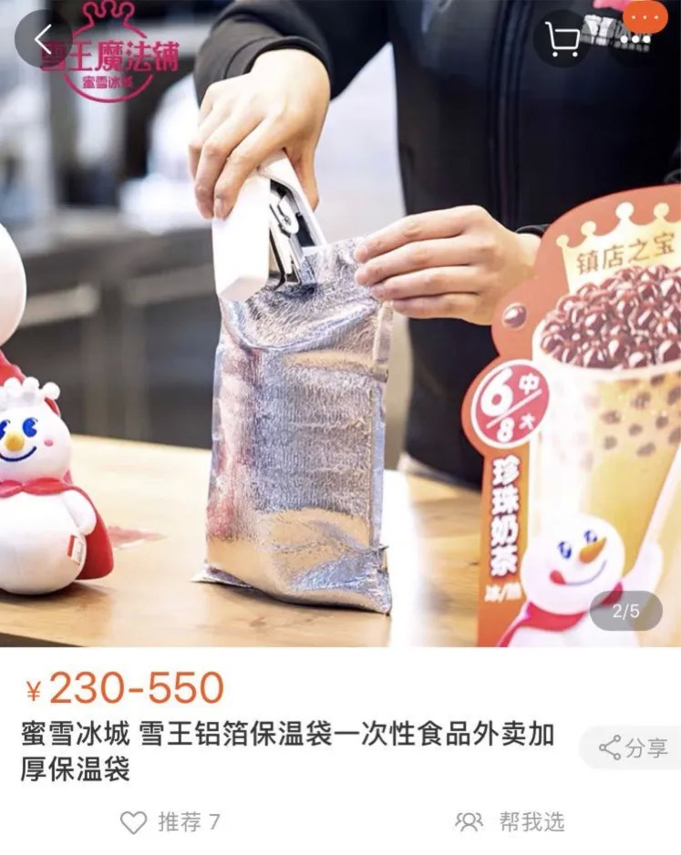 蜜雪冰城的店铺里针对B端门店的外卖保温袋