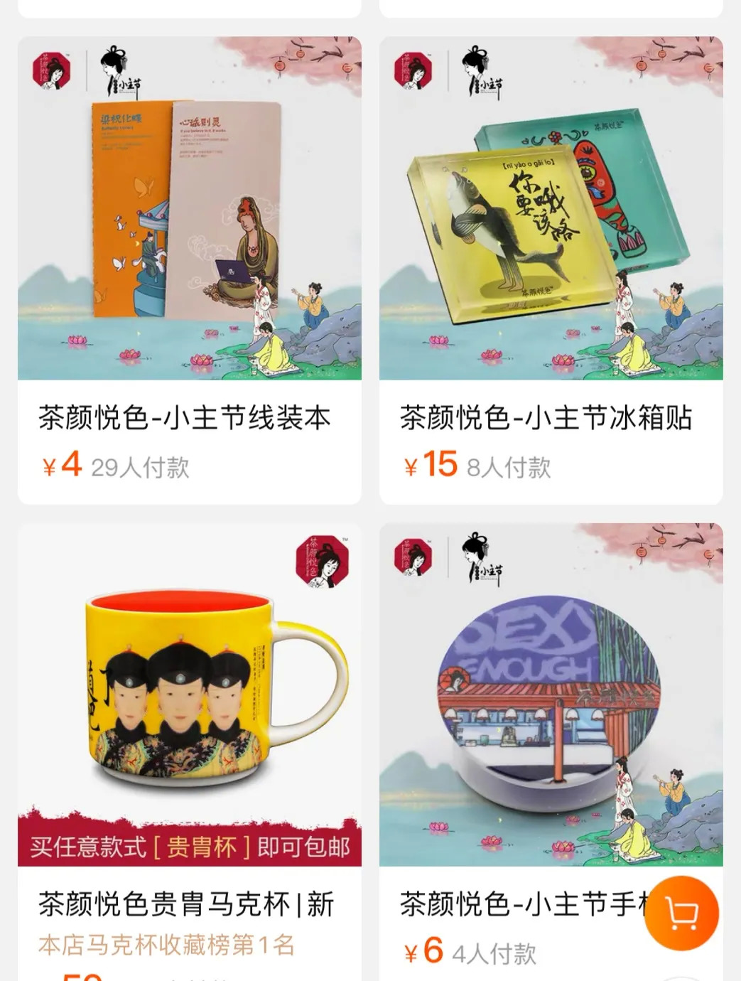 由于茶在中国有独特的文化属性,可开发的周边种类更多。茶颜悦色的店铺里,有胶带、T恤、坐垫、手机支架等等生活小物,还根据品牌风格推出专题的文创产品。