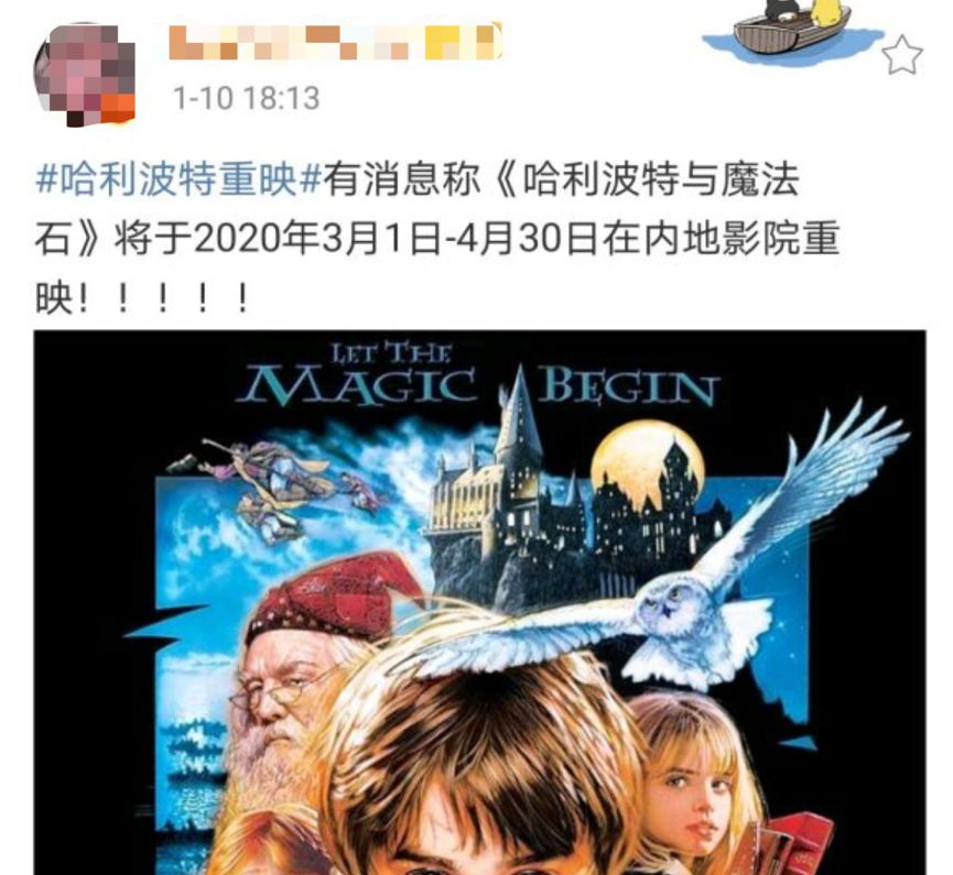 其实这并不是《哈利·波特与魔法石》首次重映,去年年底曾有媒体曝光该片会在内地重映,后期不了了之,今年年初在疫情没爆发之前,该传闻甚嚣尘上,一度会让很多哈迷信以为真。