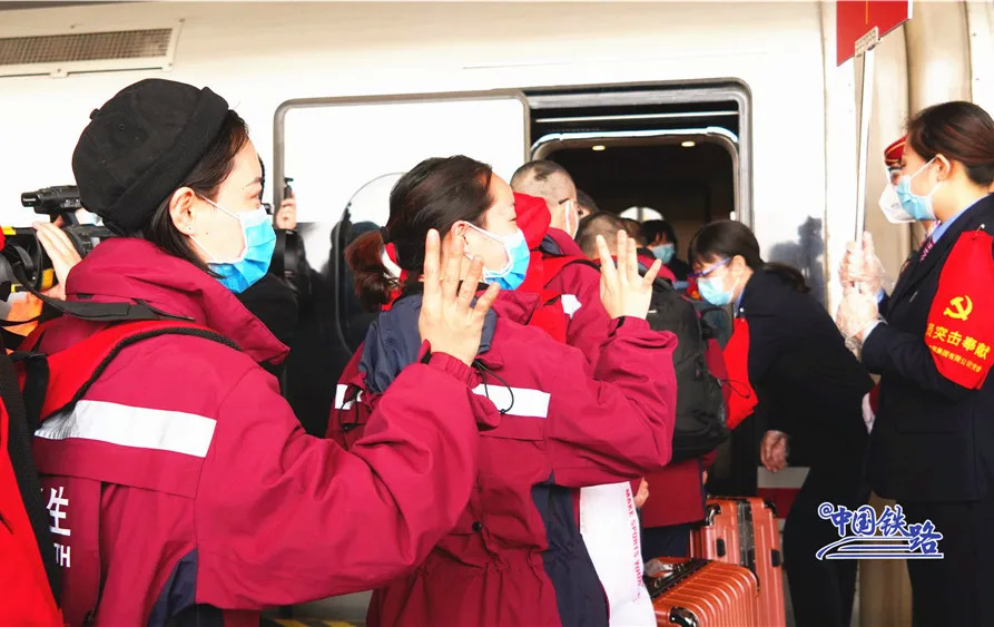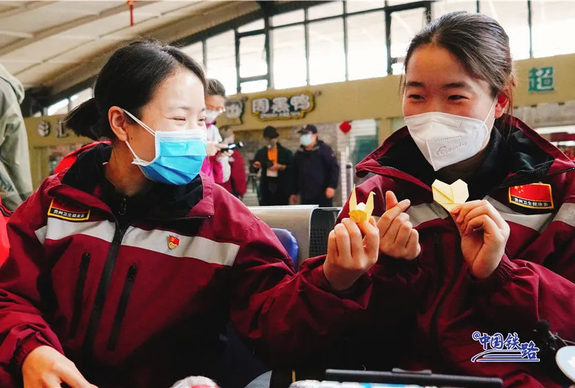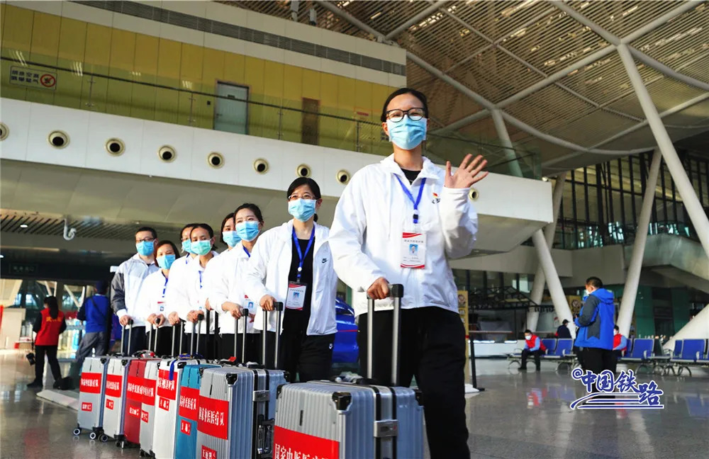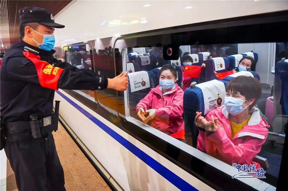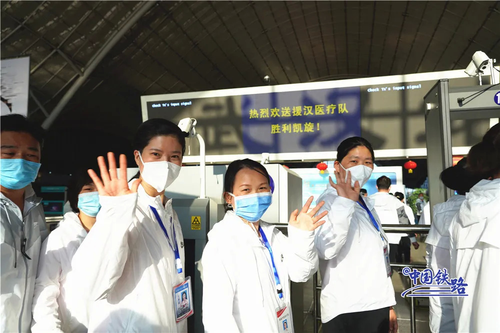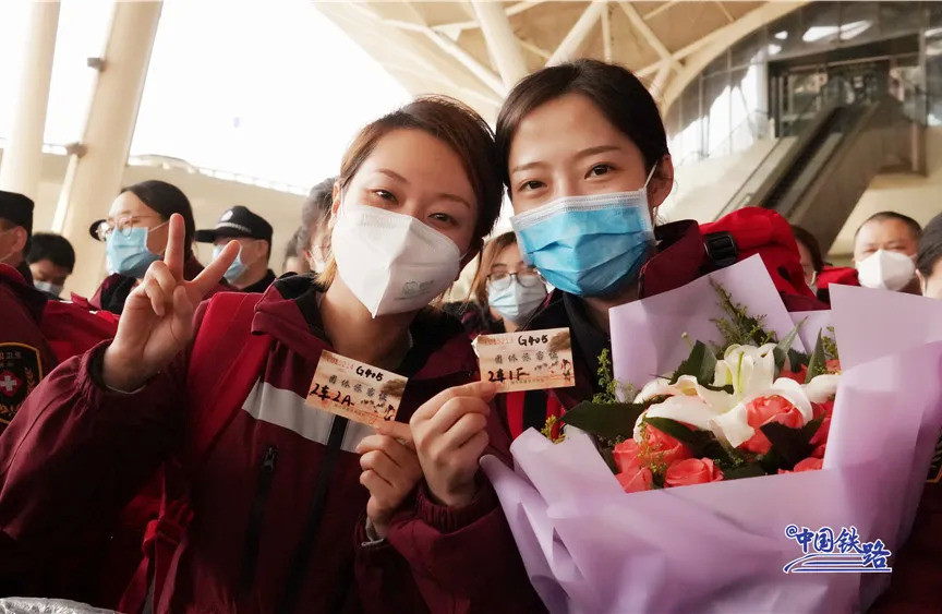 与此同时,铁路民警、车站工作人员和志愿者们在进站口列队迎接。候车室里、站台上……大家用鲜花和掌声向最美丽的“白衣天使”致敬。