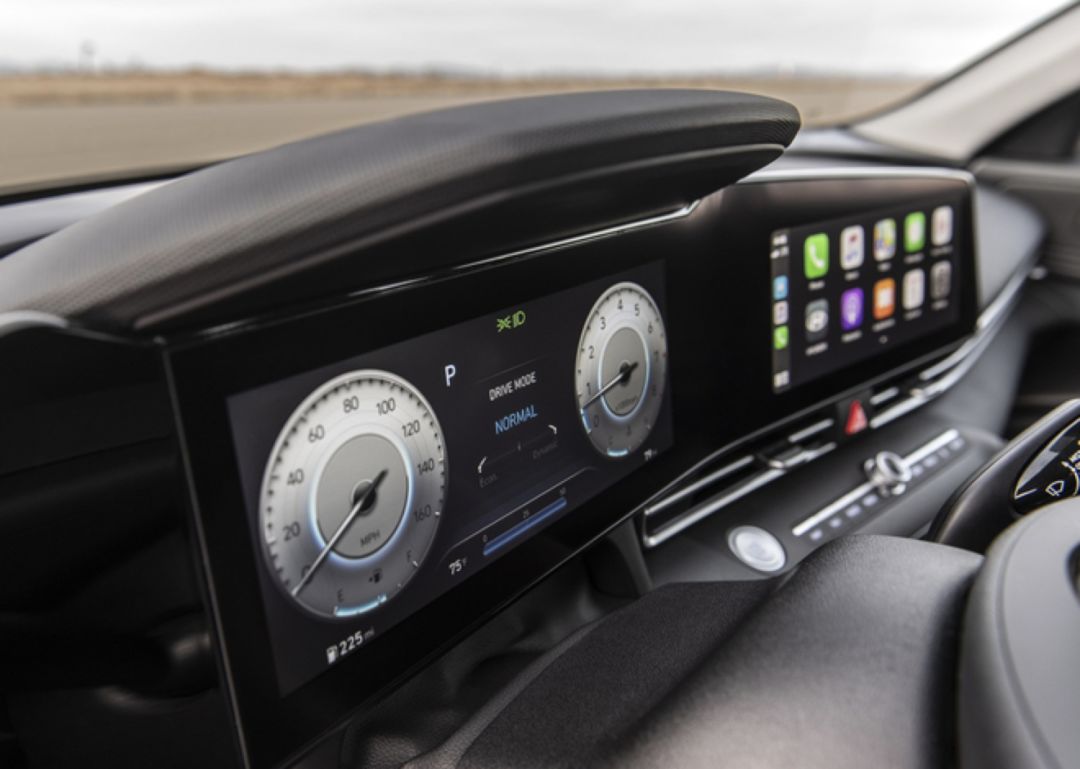 除了夸张的外观,第七代伊兰特还在内饰设计上集成了两个10.25英寸的显示屏,这似乎有向奔驰设计致敬的意味。同时,新车还支持Android Auto和Apple CarPlay两大车机系统。