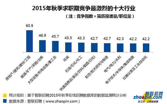 中国的职业显然与美国有很多不同,但整体就业趋势看上去有很多相同点。根据中国就业研究所与智联招聘联合发布的2015年第三季度《中国就业市场景气指数报告》表明,国内制造业、房地产等行业的用工需求持续呈现不景气状态。