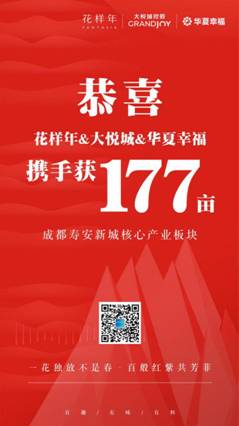 3月18日,花样年地产、华夏幸福、大悦城控股联合摘得成都蒲江2宗紧邻的商住用地,合约177.85亩。拍卖结果显示,该两宗地成交总价3.38亿元,为底价成交,均价1425元/㎡。继3月17日再摘郫都42亩低密地块后,花样年日夜兼程向西进发,再次携手大悦城、华夏幸福斩获蒲江县寿安镇177亩住兼商用地。