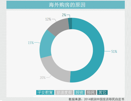 另根据《2014胡润中国投资移民白皮书》,美国是受访高净值中国人群海外置业的绝对首选,占60%,是整个欧洲的近10倍;其次是加拿大,占22%;欧洲排名第三,占7%。洛杉矶、旧金山和温哥华是高净值人群最青睐的海外置业城市前三名,前十名中有七个北美城市。