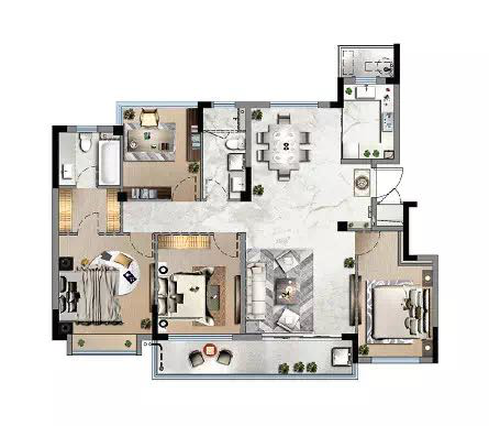 龙湖坤和·天境建面约139平墅区洋房,是宁波人最爱的四开间朝南+双阳台格局。