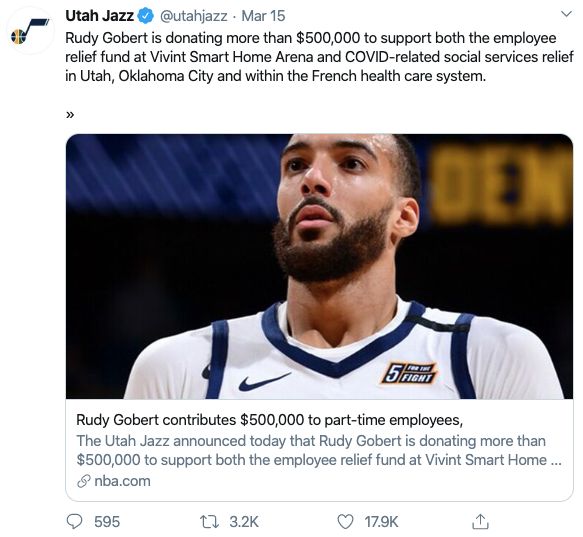 此前在发布会上故意摸话筒、不重视疫情的戈贝尔,如今也在极力号召大家共克时艰:「我真的希望自己之前能更加认真对待这次疫情,现在我希望每一个人都能认真去对待,因为我们可以团结一起,去对抗疫情。」
