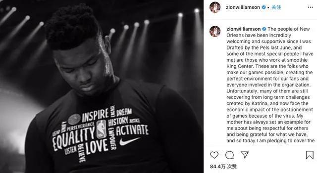 字母哥和格里芬迅速响应号召,纷纷捐款。值得注意的是,作为一名新秀,年仅19岁的锡安在这一方面,显然有着很高的觉悟。