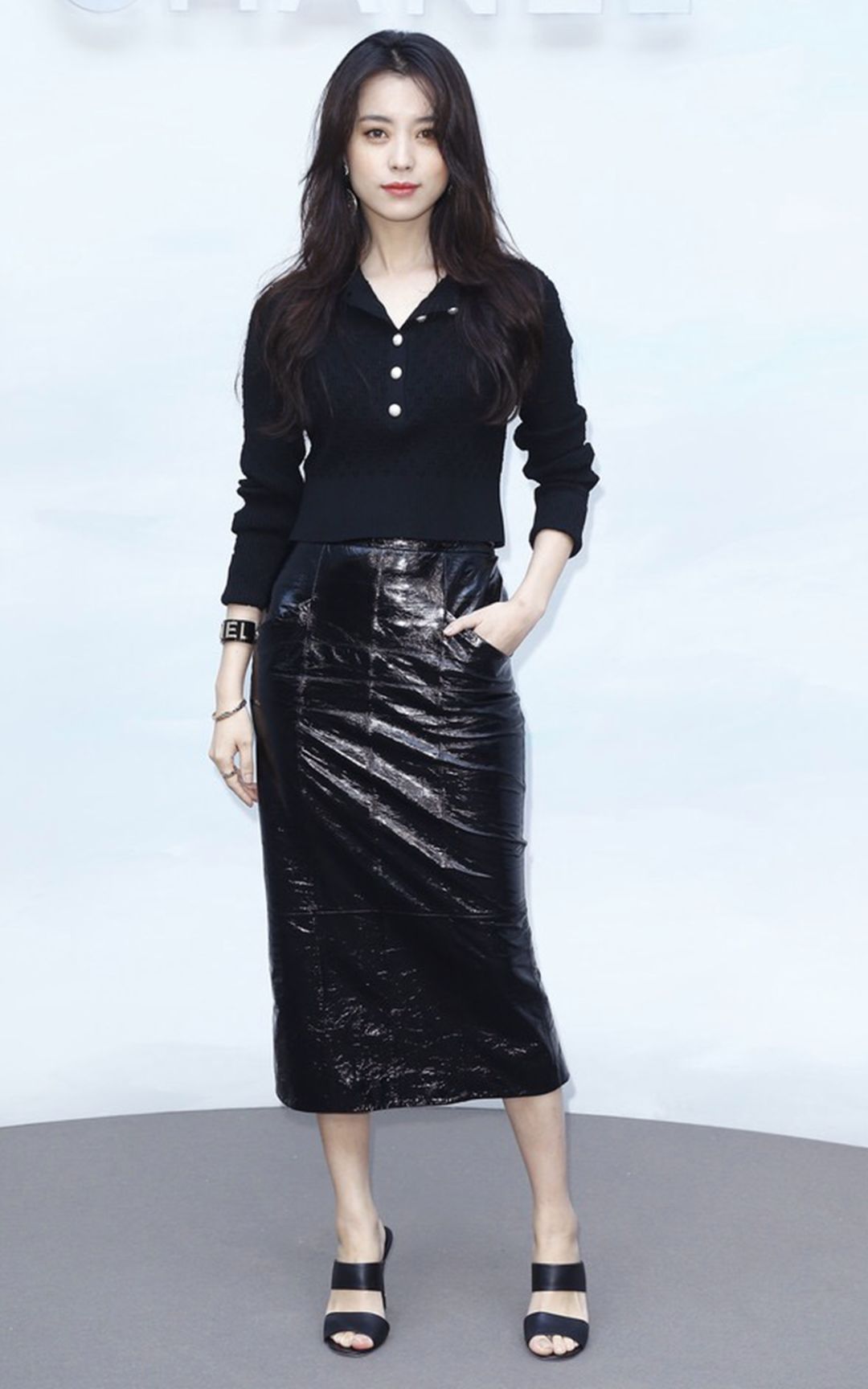 终于,这次她穿对了,裙子简洁但有设计感,手包配的也可以。虽然鞋子像从陆依萍的鞋柜借的,但也算说的过去。