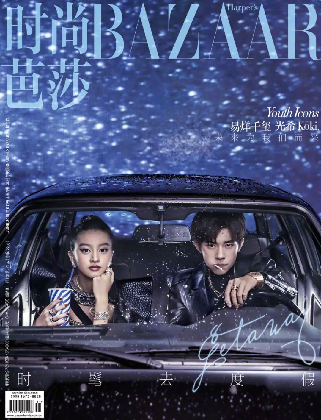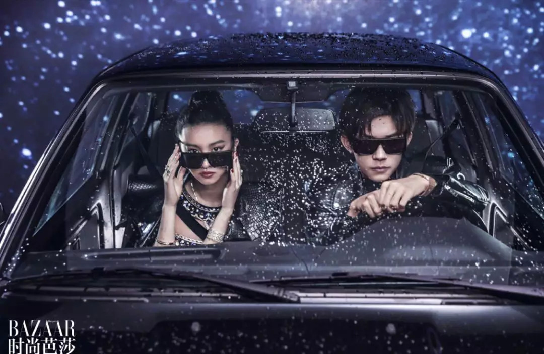 你们的老公易烊千玺也和她在《时尚芭莎》上上演过叛逆公子哥与黑道富家女的爱情大逃亡。