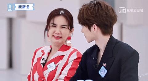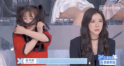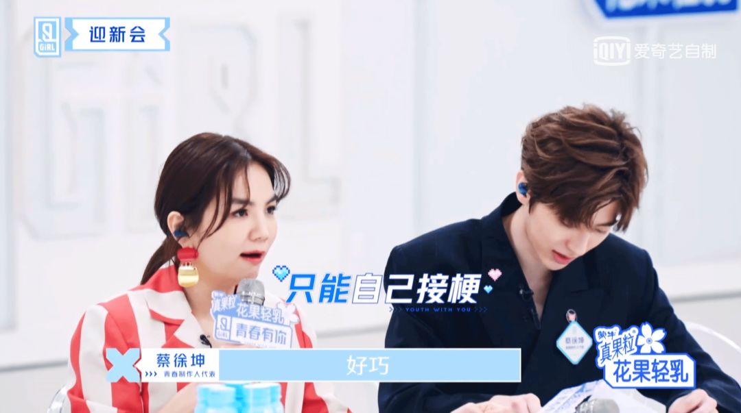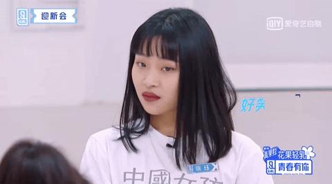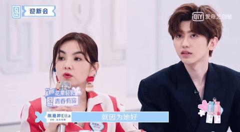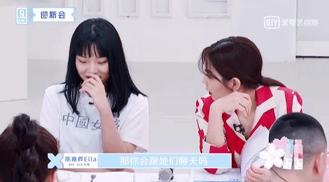 说实话,我其实有在偷偷嗑她和蔡徐坤的CP,之前迎新会的时候,有其他选手坐到了蔡徐坤旁边,省话一姐直接对着他就来了一句:你耳朵红了…… (好直接,我喜欢!)
