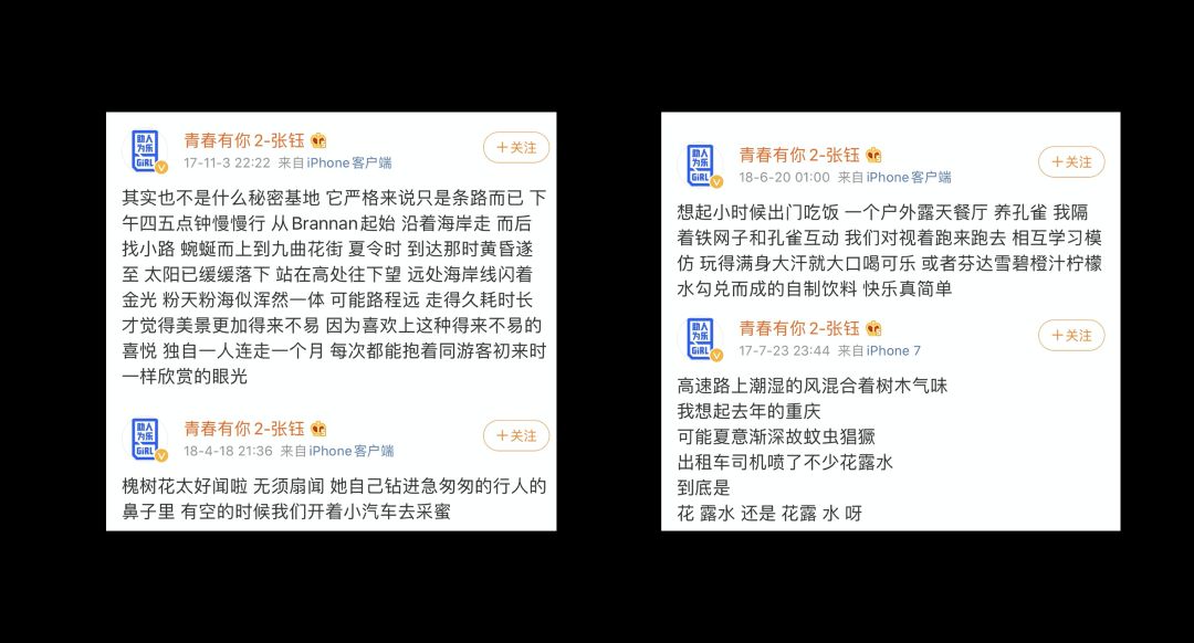我还跑去她的微博逛了一圈,发现她是那种很做自己,你在现实中也很想认识的朋友,会在微博上分享各种生活碎片,写很文艺的文字。