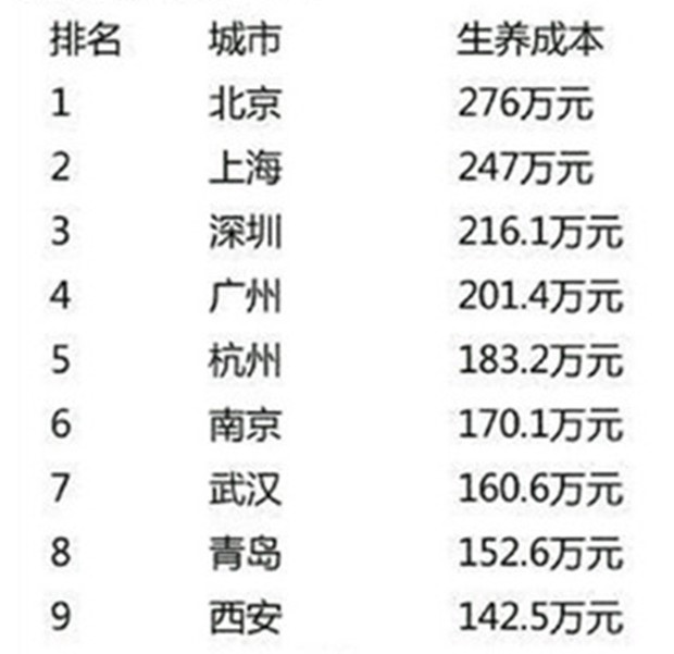 随着90后都以大批婚嫁生子,茶余饭后的话题肯定都离不开孩子,而大城市的生养成本高更是引发热议。最近网友搞了一个九大城市生养孩子的成本排名,帝都以276万元成为了当之无愧的第一。