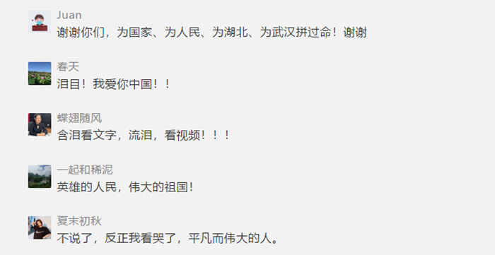 真好,禁不住泪目了!感谢新时代的最美逆行者,正是因为有了你们才有了武汉的平安,有了湖北的平安,有了全中国的平安!真心的感谢你们!