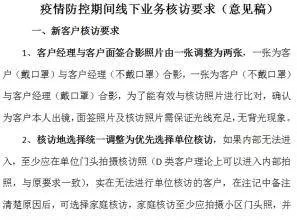 众所周知,兴业消金主要依靠线下直销团队“上门收件、亲核亲访”来展业,如今公司出台了“疫情防控期间线下业务核访要求”,改进了对于新客户及存量客户的核访要求。