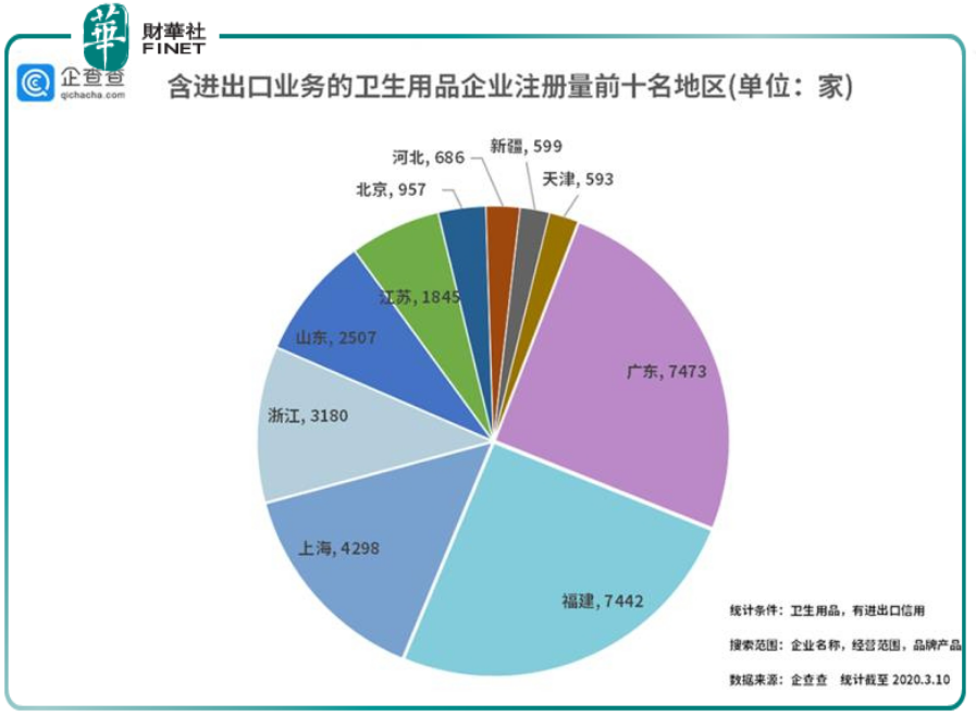 企查查专业版数据显示,中国共有卫生用品类相关企业218.1万家,其中具备进出口信用的卫生用品企业3.5万家,占总量的1.58%。
