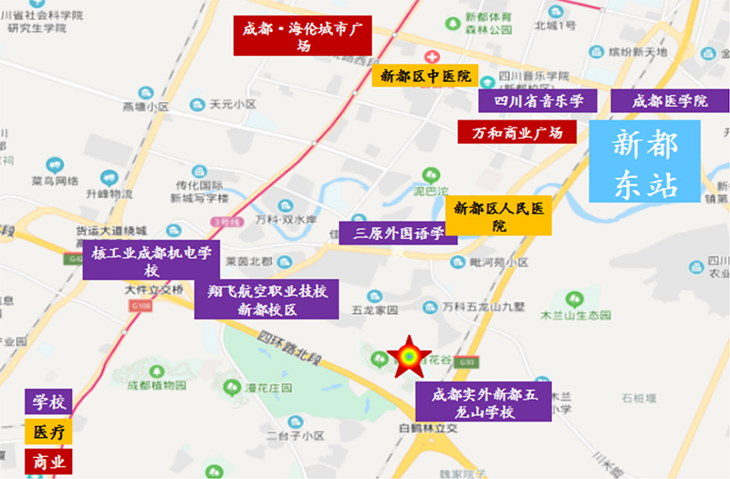 宗地位于新都区的198生态高端居住版块。三条地铁线环绕,3号线现已通车,16号线、34号线也在规划中。地块周边教育配套丰富,四川音乐学院(新都校区)、三原外国语学校、成都实外新都五龙山学校、成都医学院(新都校区)等名校环伺;其它生活配套如商业、医院等能满足居民生活基本需求。所属版块规划多以住宅用地为主,更加舒适宜居。