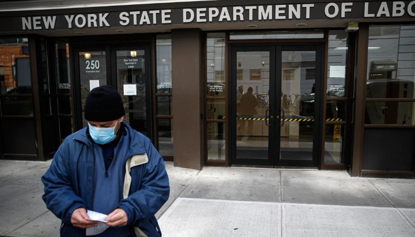 周四,纽约州劳工部门透露,部分地区的救济金申请上涨了1000%,网页登录也上涨了400%。