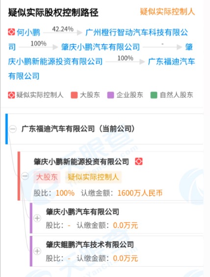 天眼查信息显示,3月19日,福迪汽车的股东方已变更肇庆小鹏新能源投资有限公司。而后者则是小鹏汽车旗下子公司。