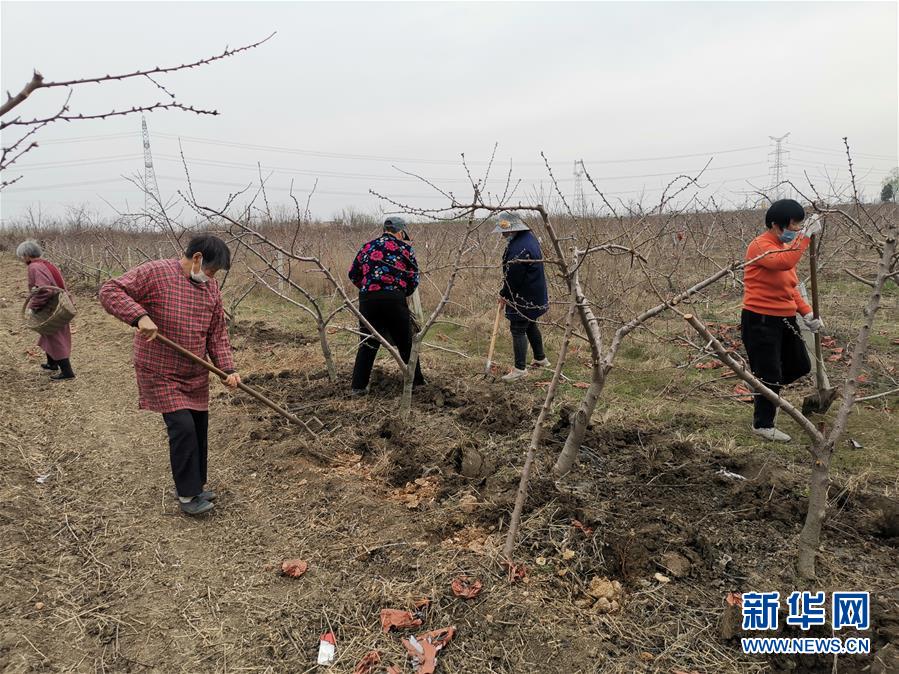 3月16日,安徽省宿州市意利达农业科技专业合作社的工人在果园里劳作。新华社发