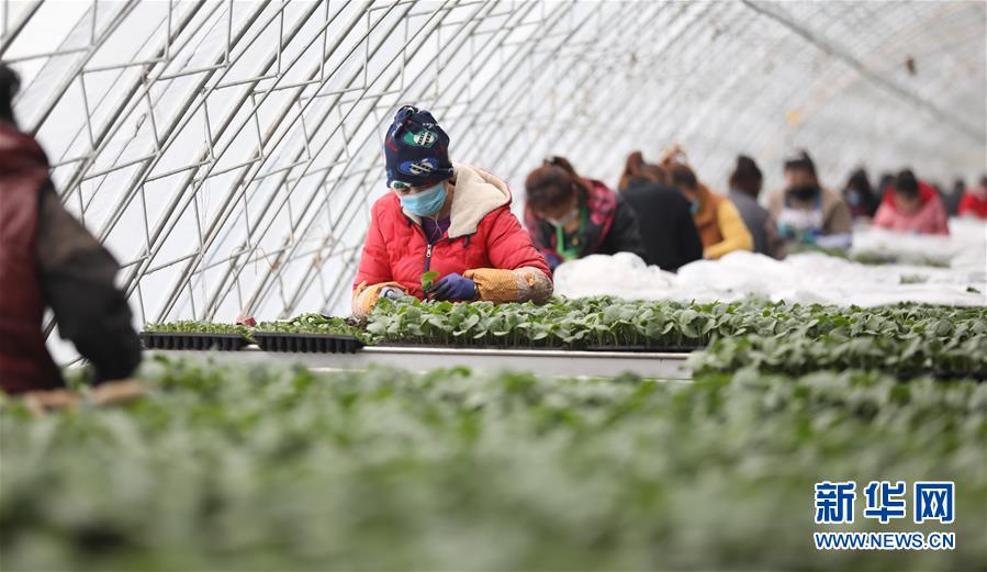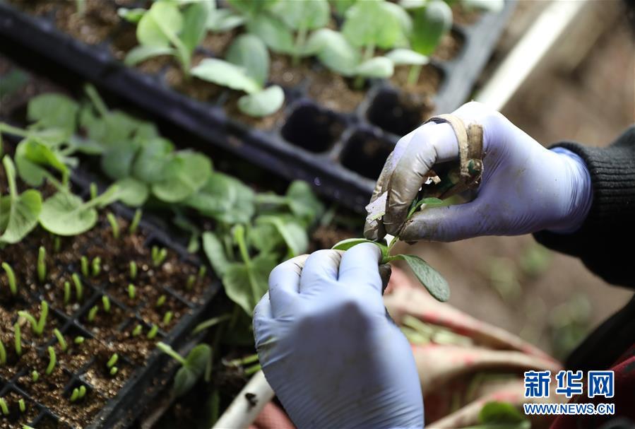 工人在辽宁省海城市三星生态农业有限公司育苗大棚内培育蔬菜秧苗(3月3日摄)。新华社记者 姚剑锋 摄