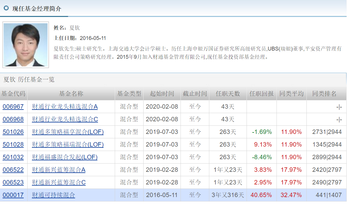 不过,他管理的基金表现难言“好赚钱”。去年年中,他接手财通多策略福享、财通多策略福瑞、财通福盛混合发起基金,任职263天,回报率分别为-1.69%、9.13%、-8.46%。