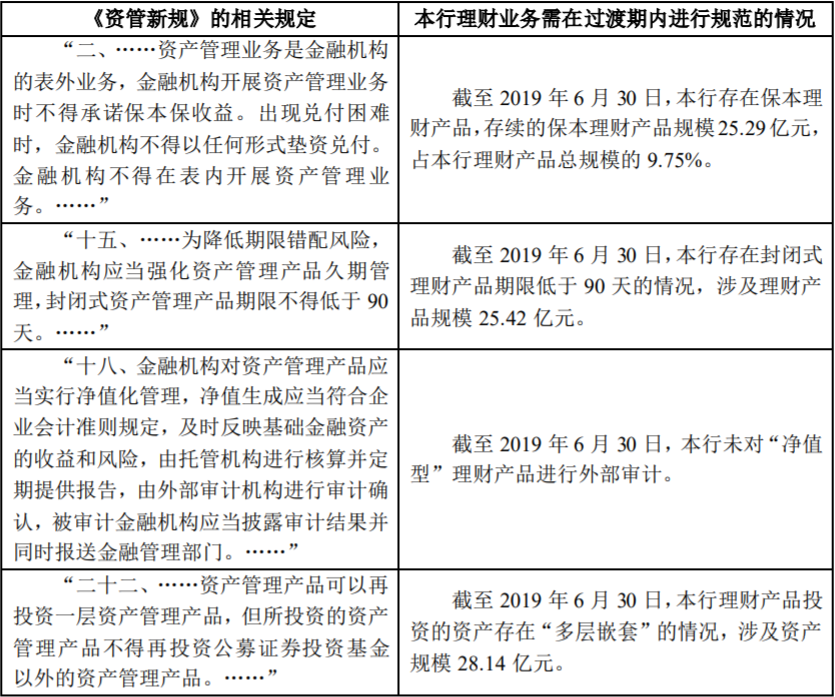 青农商行表示,2020年逐步停止发行不符合《资管新规》要求的理财产品,实现理财业务全净值化合规运营,力争在2020年底完成存量产品的整改。
