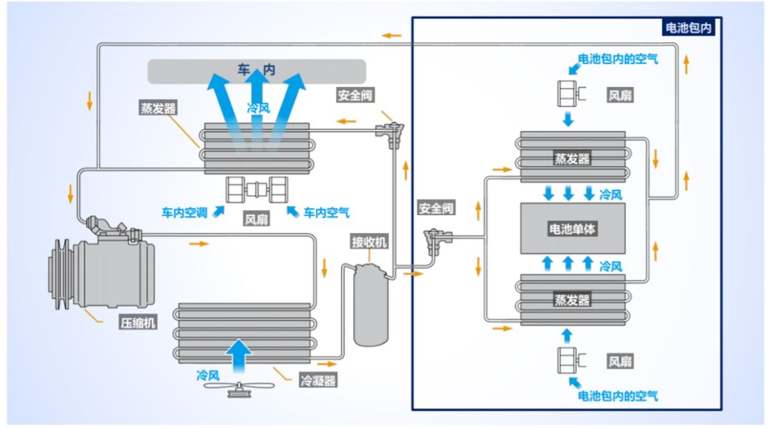 以目前的技术发展,电池在低温和高温下有着各种不适症状,具体表现为低温时电池充电速率会降低,高温时电池输出功率会降低,同时电池输出稳定性不好。目前电池的散热方式主要有液冷和风冷两种方式,但这两种方式都围绕着温控系统展开,要把温度控制在一个比较理想的范围内,要解决这个问题就必须考虑如下冷热两种极端使用场景。