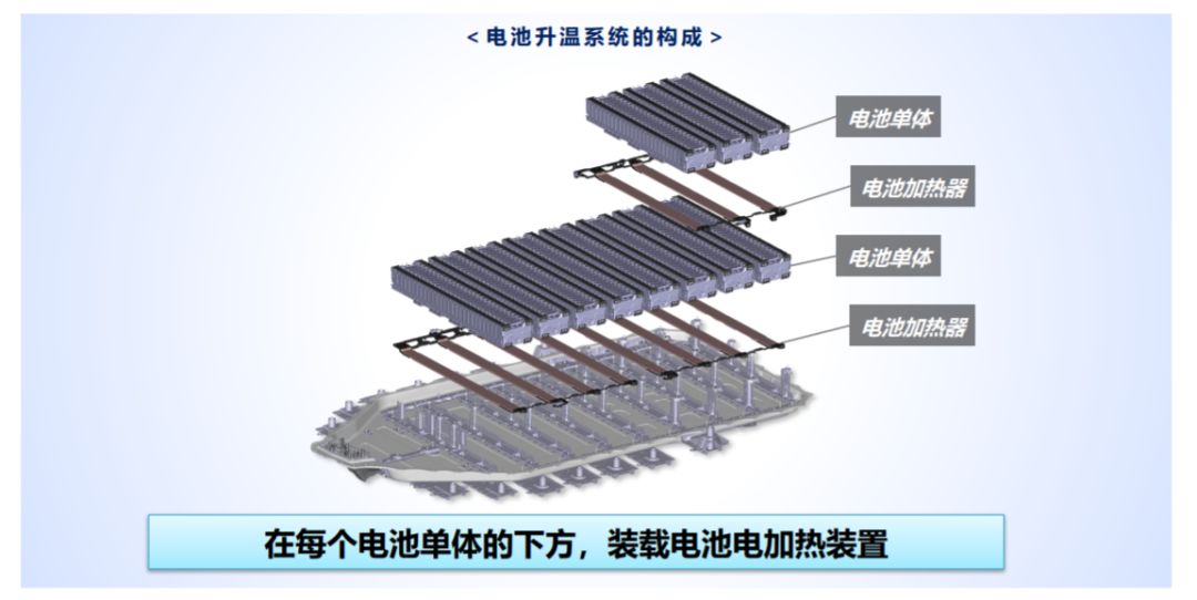对于电池高温,丰田利用的是空调系统,把蒸发器设置在电池包内部,这样电池就可以像乘客一样,在炎热的夏天使用空调,保证整个环境的温度稳定。对于电池低温,丰田在每块电池单体下装载了电池电加热的装置,相当于给每块电池下面铺了一层「电褥子」。