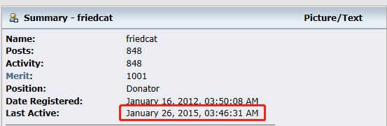 矿机出问题、投资失败后,烤猫一直试图通过人脉资源东山再起,但最后都没有进展。到了2014年底,他去淮安考察完矿厂之后突然消失了;据悉连他的朋友甚至是家人都无法和他取得联系。自烤猫失踪后,公司停止分红,其3.546 P算力的矿场不知道被谁抢走,可知的三个与他关联的地址在2015年3月被转走约1万9千枚比特币......