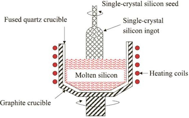直拉法:工艺成熟,更容易生长大直径单晶硅,生长出的单晶硅大多用于集成电路元件。