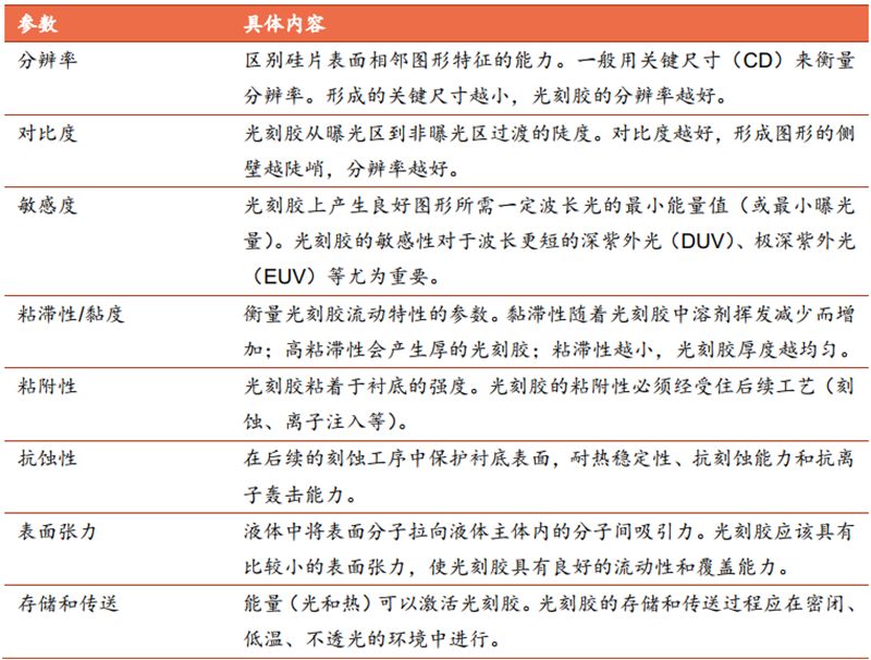 分辨率、对比度和敏感度是光刻胶的核心技术参数。随着集成电路的发展,芯片制造特征尺寸越来越小,对光刻胶的要求也越来越高。光刻胶的核心技术参数包括分辨率、对比度和敏感度等。为了满足集成电路发展的需要,光刻胶朝着高分辨率、 高对比度以及高敏感度等方向发展。