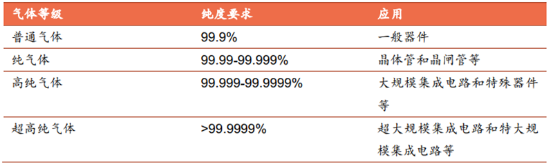 电子气体的技术壁垒极高,最核心的技术是气体提纯技术。此外超高纯气体的包装和储运也是一大难题。在半导体制造中,电子气体纯度每提升一个数量级,都会促进器件性能的有效提升。