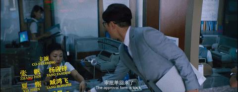 支行行长老吴(田雨饰)在一旁急得抓耳挠腮。