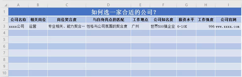 为了选择一家合适的公司,我做了一张Excel表格。