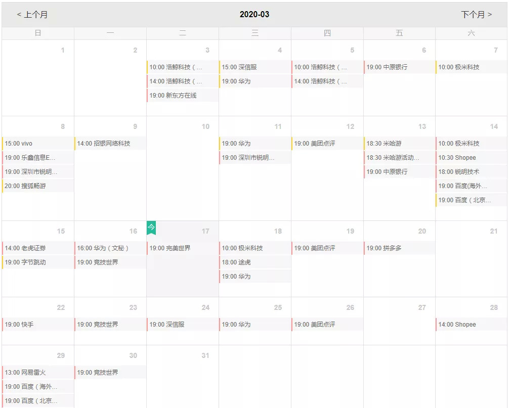 牛客网校招笔试日历