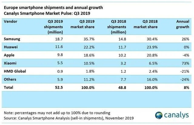 另一边,canalys发布的报告指出,小米智能手机2019年Q3在全球的出货量同比下降3%。手机卖得更少的情况下,盈利能力不降反升,与毛利率的提升有直接关系。而毛利率提升对应正是手机均价的上涨,品牌溢价战略的实施。2019年前三季度,小米手机平均售价分别为968.3元、998.7元和1006.5元。