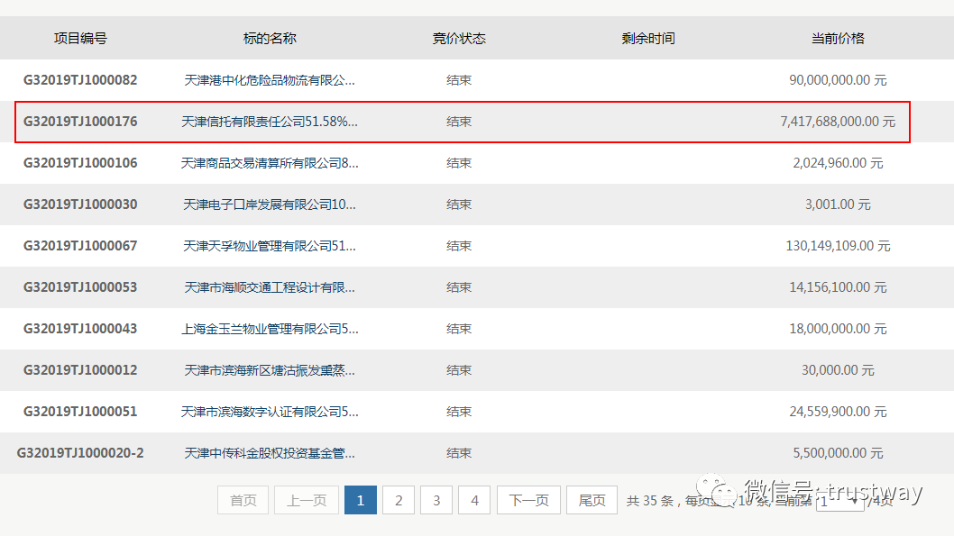 今日,双方以39.5亿元的底价竞拍争夺天津信托控股权。