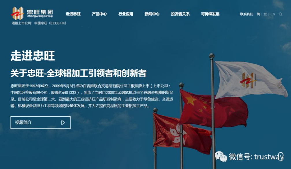 资料显示,忠旺集团成立于1993年,总部位于中国辽宁省辽阳市,是全球第二大、亚洲最大工业铝挤压产品研发制造商,是中国高端制造业的代表,也是高铁“复兴号”整车车体铝型材的最主要供应商。