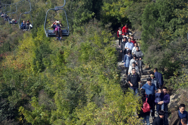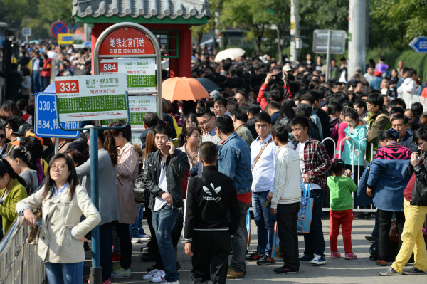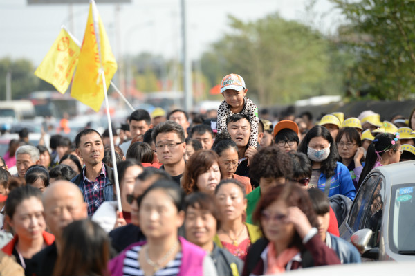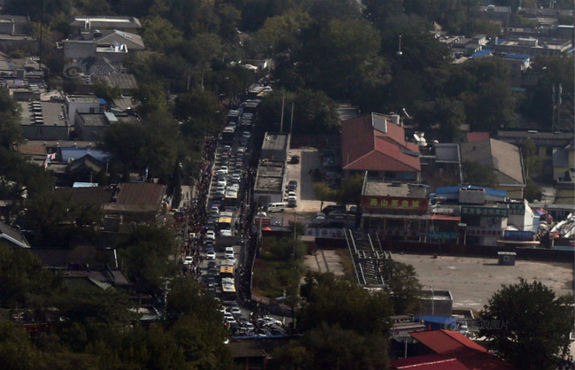 去往香山看红叶的人流。