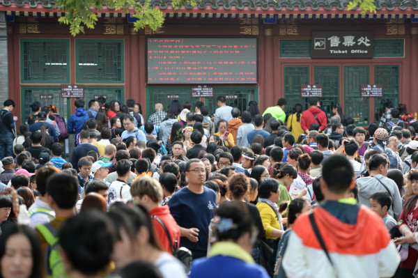 香山门口,游客拥挤。
