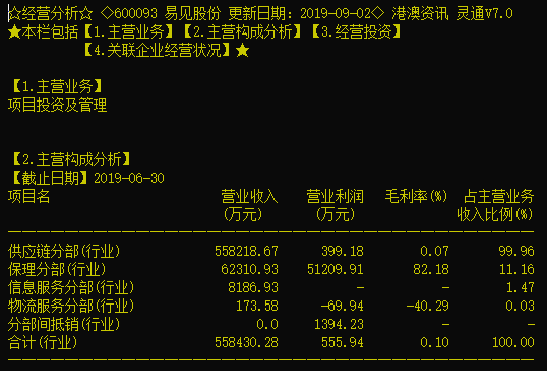 资料显示,易见股份主营项目投资及管理,2019年前三季度的营业收入和净利润分别为99.23亿元和7.77亿元。