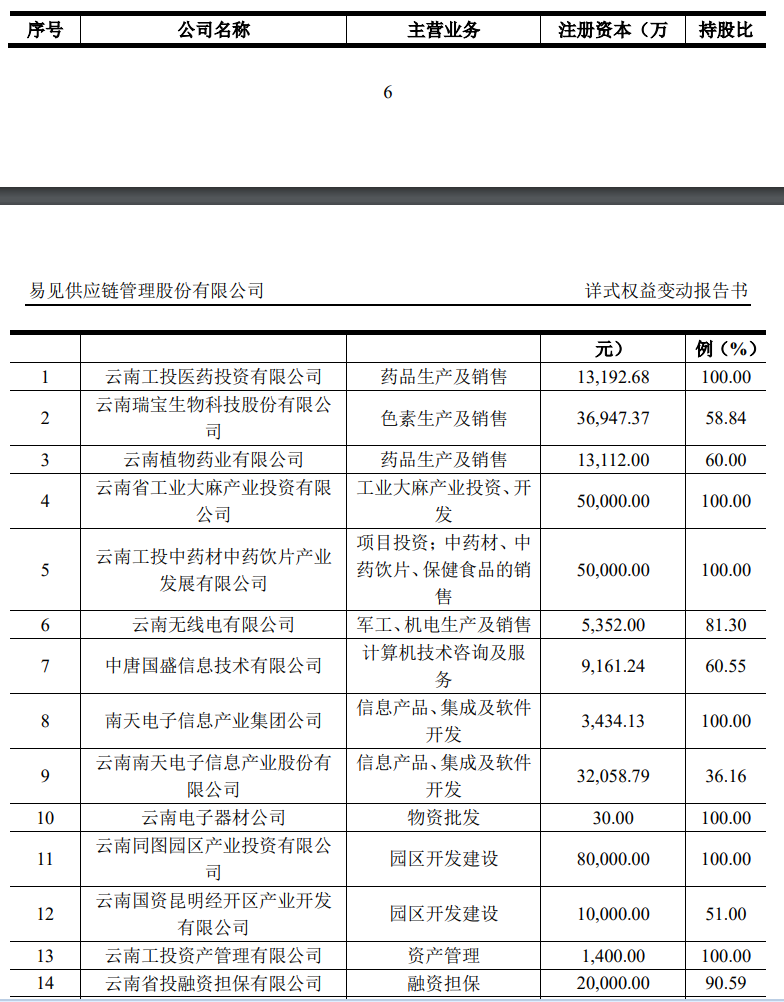 转让之前,云南工投持有易见股份1500万股,占总股本的1.34%,其控股子公司云南工投君阳投资有限公司(下称工投君阳)未持有股份。转让之后,云南工投将持股9.34%。与此同时,工投君阳也将通过协议转让的方式,受让易见股份2.02亿股(占总股本的18%),据悉该笔转让拟于近期完成过户登记手续。两项相加,工投君阳和云南工投将合计持有易见股份3.07亿股,占易见股份总股本的27.34%,易见股份的实际控制人将由滇中新区管委会变更为云南省国资委。