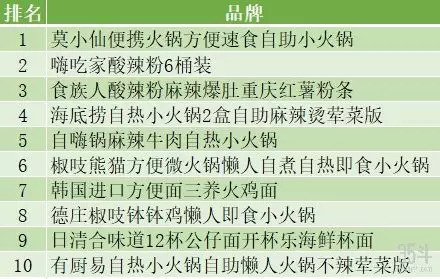在天猫发布的2019年方便速食TOP10网红单品中,自热火锅类食品占据超过半数席位。