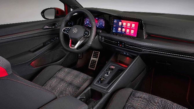 更有趣的是,新车的“内在美”似乎也呈现了些许的“大众风”,双联屏+贯穿式出风口的设计与更早发布的第八代大众高尔夫相似度颇高,就连屏幕尺寸和倾斜角度也几乎一致。