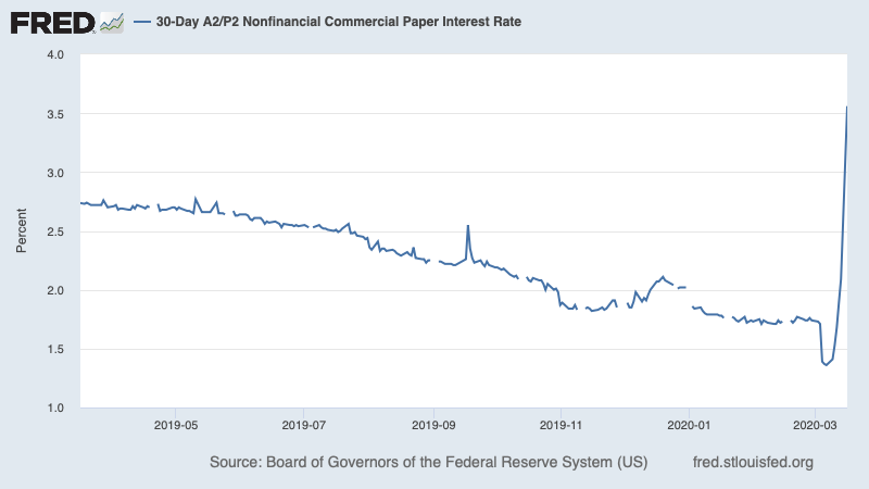针对于上述难题,美联储在3月17日宣布重启商业票据融资便利(CPFF)。这是联储直接支持小企业的重要方式,通过CPFF美联储可以绕开银行,直接为受疫情影响的企业提供流动性。CPFF的定价为3个月隔夜指数掉期(OIS)利率加上200个基点,运作时间长达一年,财政部将为美联储提供100亿元的资金支持。美联储表示,“商业票据市场近期承受很大的压力,因为企业和家庭面临的疫情不确定性增加”,“CPFF应该会鼓励投资者再次进入票据市场,从而在政府抗击疫情时强化企业保持用工和投资的能力”。