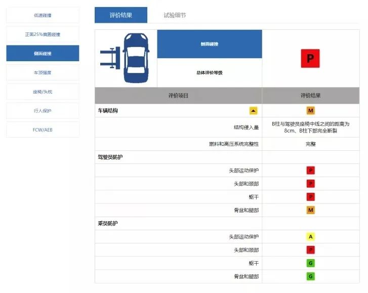 根据评分表,可以看思域P评级的项目多达4项,仅有两项拿到了G。